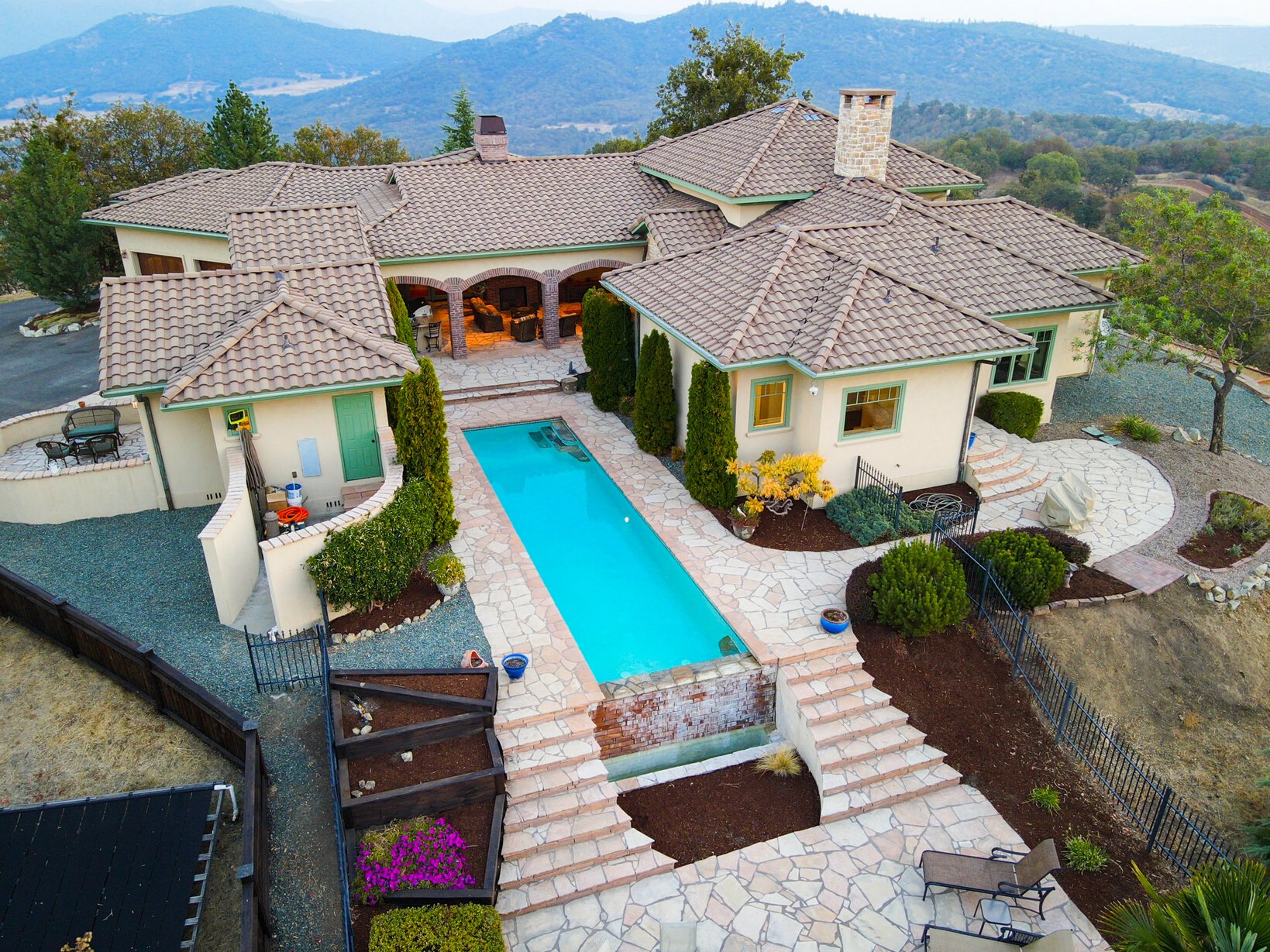 Crowning an incredible 61-acre mountain top site is a spectacular single level Tuscan style villa with true 360 panoramic views.